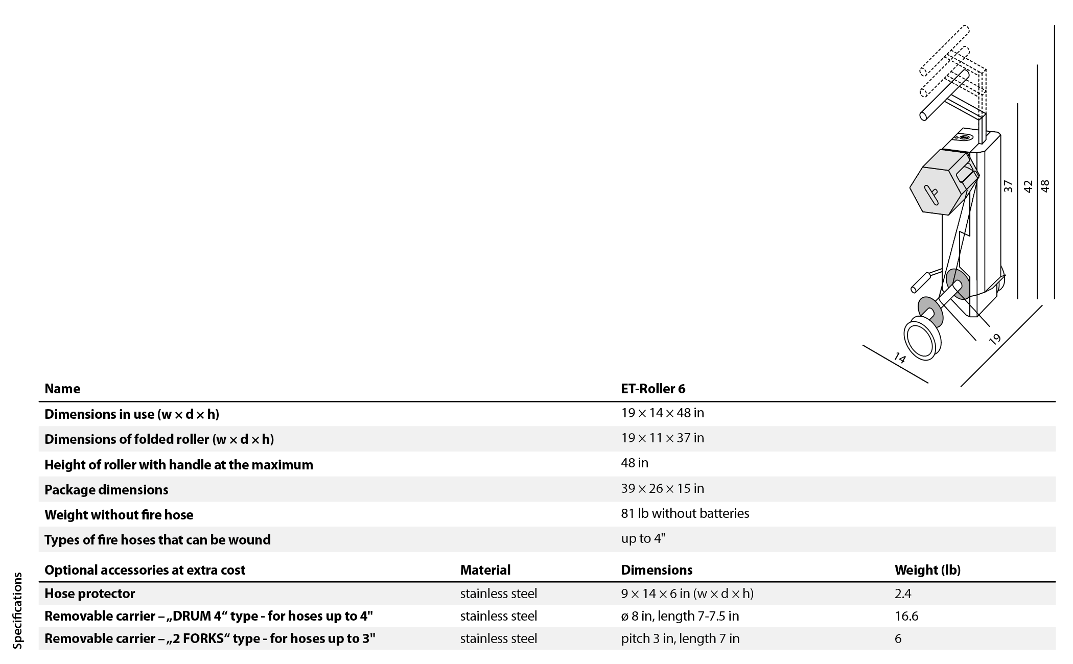 - Quick and convenient winding of both dry and wet fire hoses up to 4"